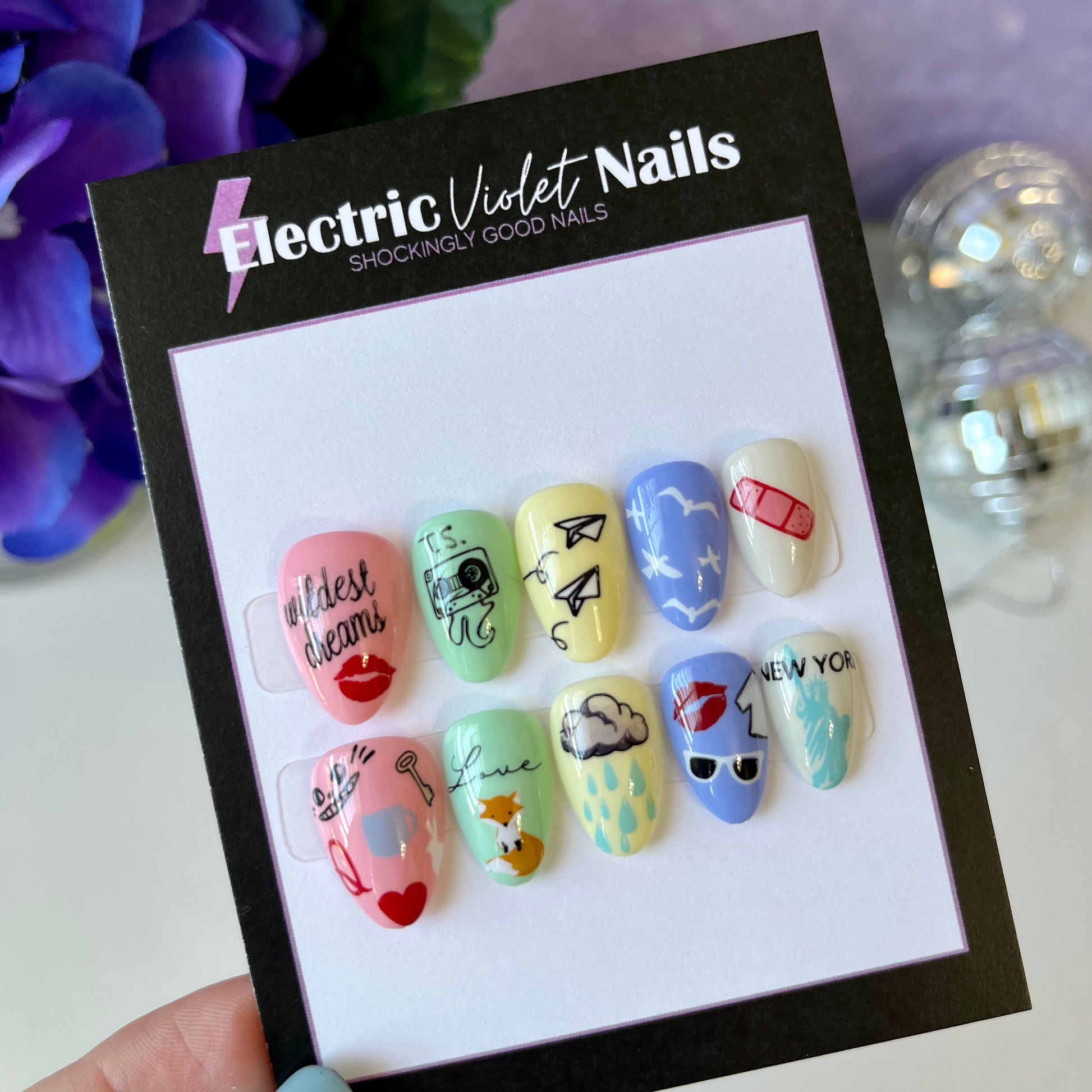Don't miss out on the chance to show your love for Taylor in style with these fabulous press-on nails. Order your set today and get ready to rock your Swiftie fandom with pride! Example set is XXS Almond