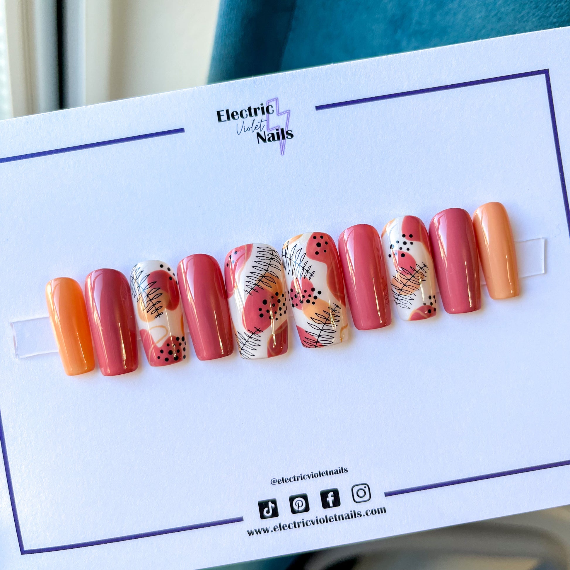 Example set is Medium Square. Length and shape can be changed to any of the options on the menu. Colors can also be changed. If you would like specific colors, please include them in your order notes.