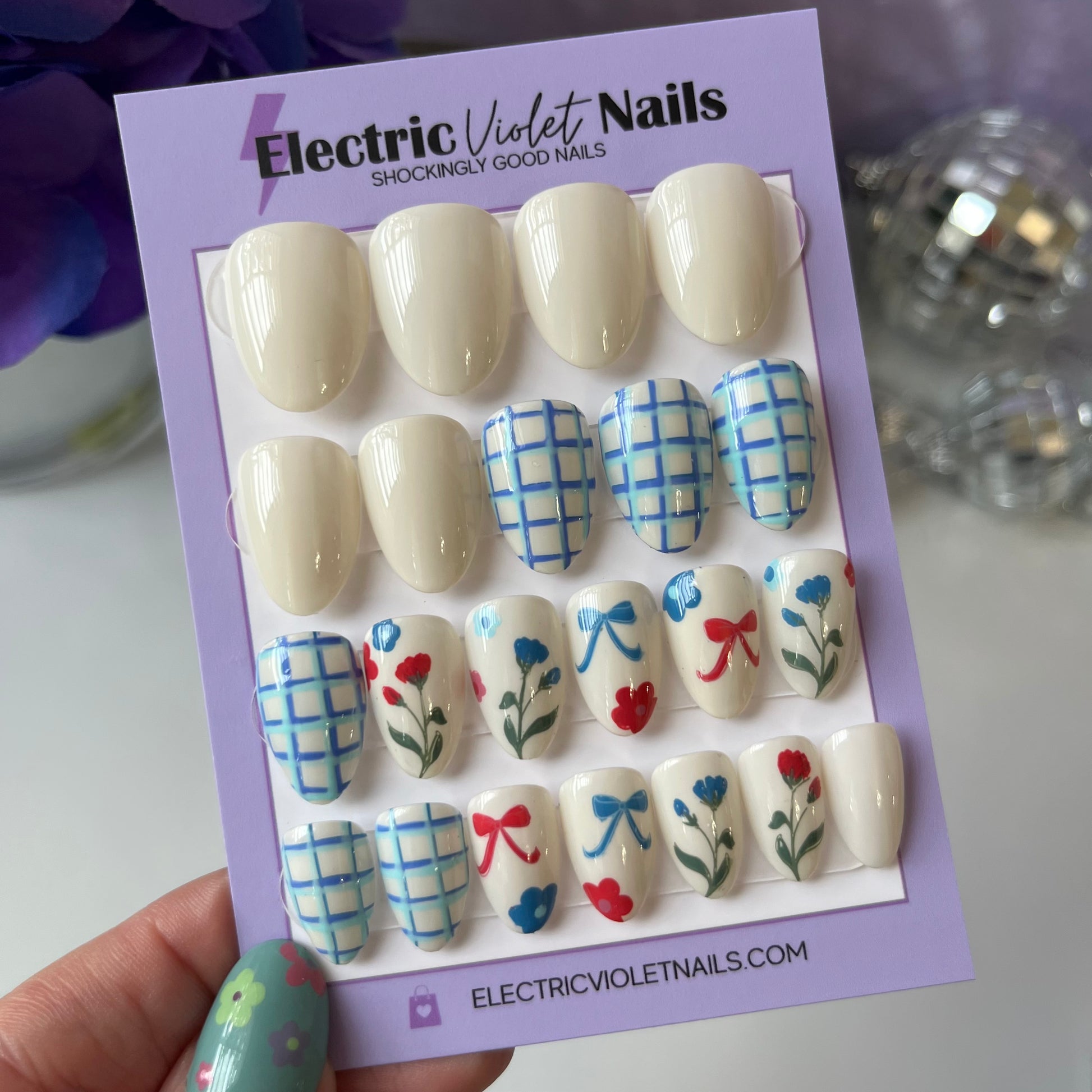 Please enter your sizes into your order notes. If you have questions about sizing, please reach out to me at info@electricvioletnails.com