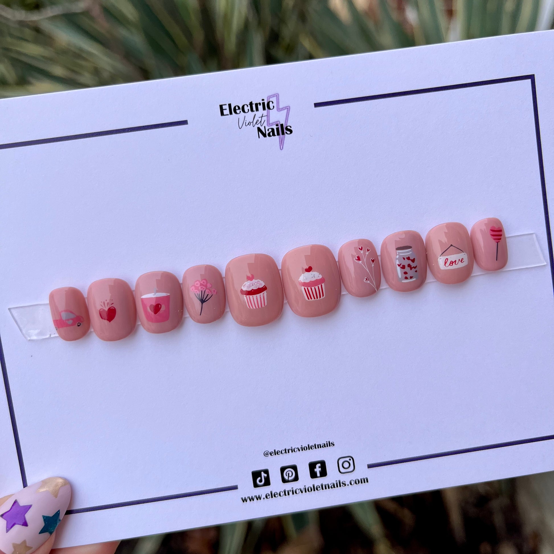Example set is XXS Oval. Length and shape can be changed to any of the options on the menu. Colors can also be changed. If you would like specific colors, please include them in your order notes along with your sizes.