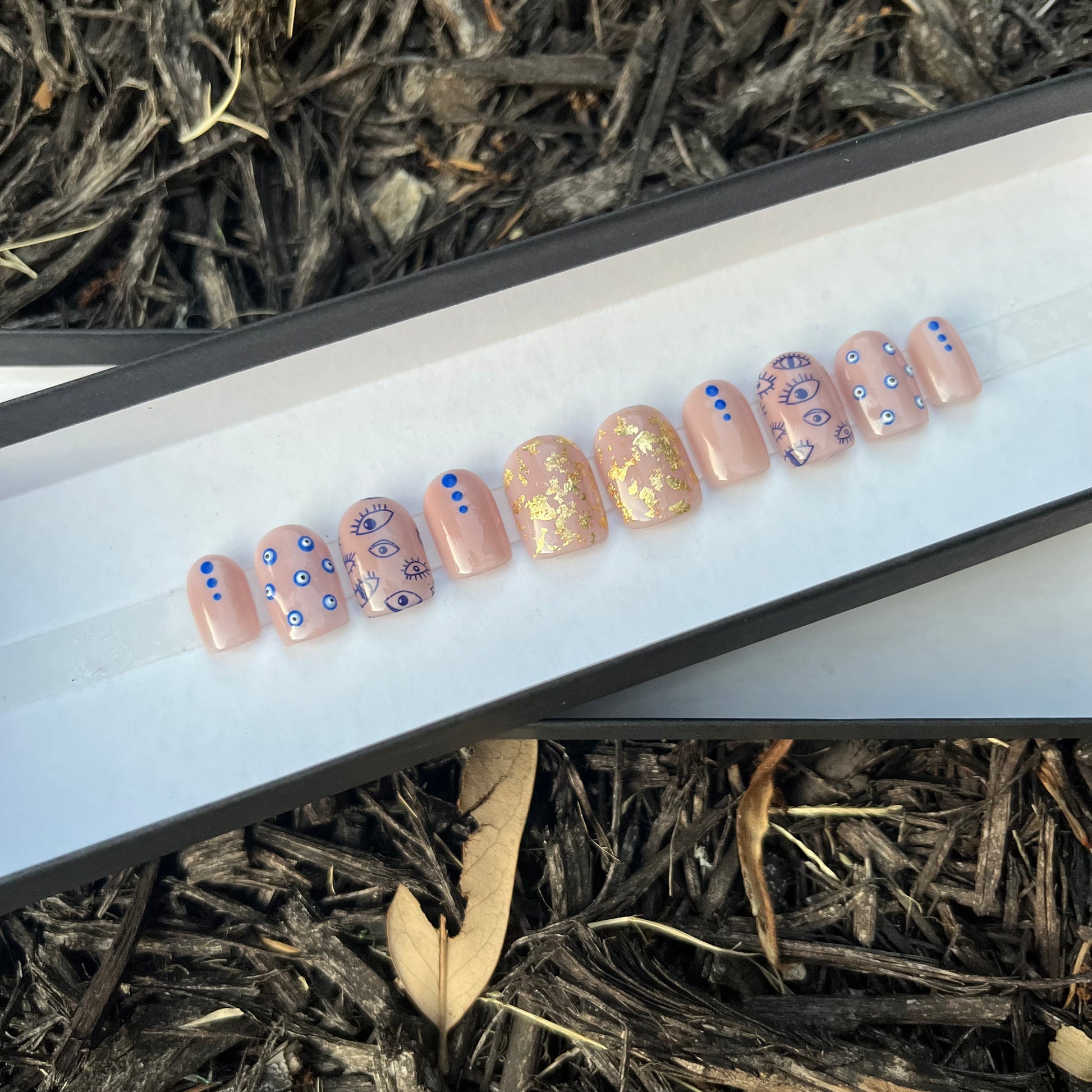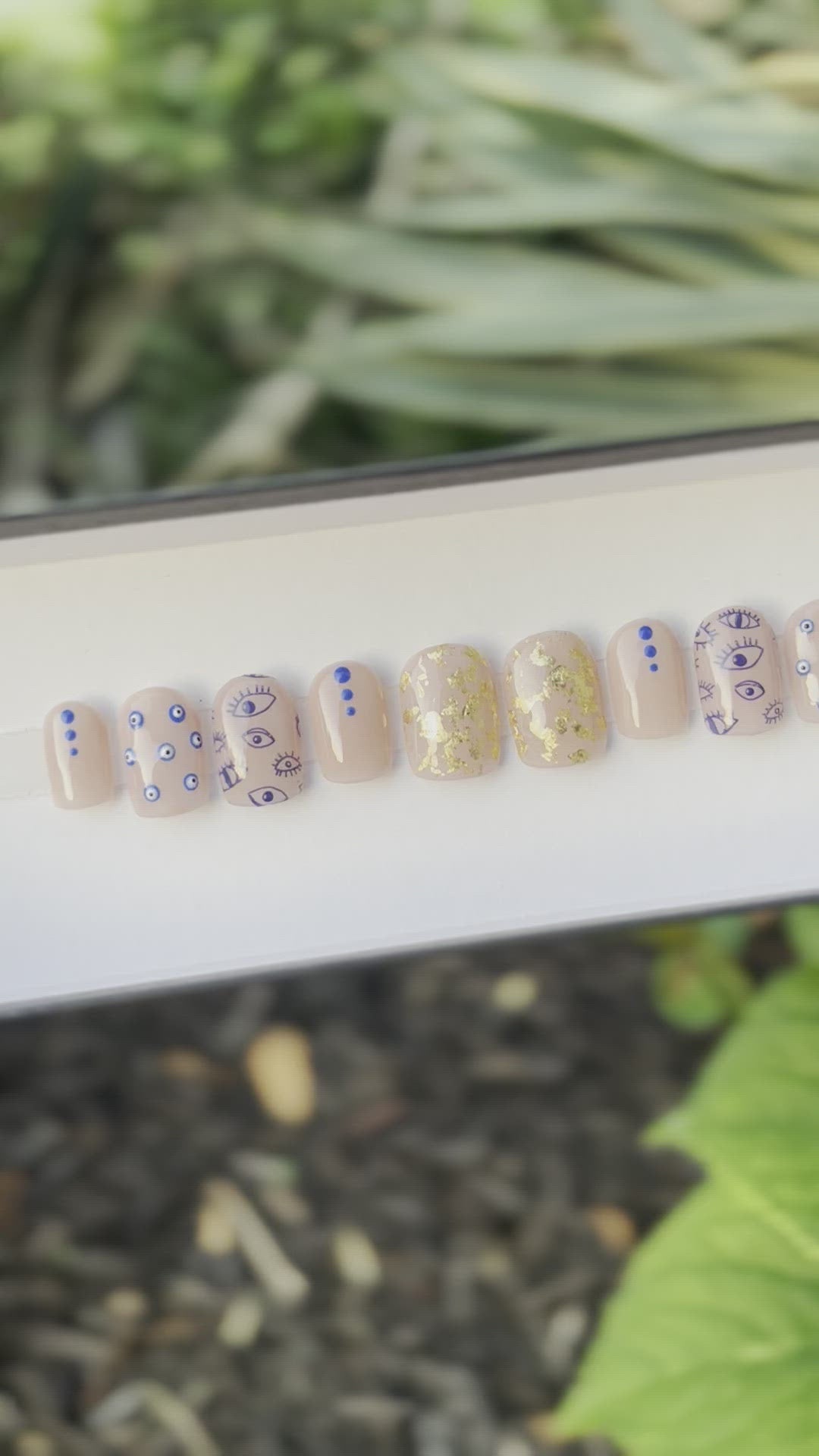 Set Description: Neutral background with blue and white evil eye accents. Pops of gold foil.