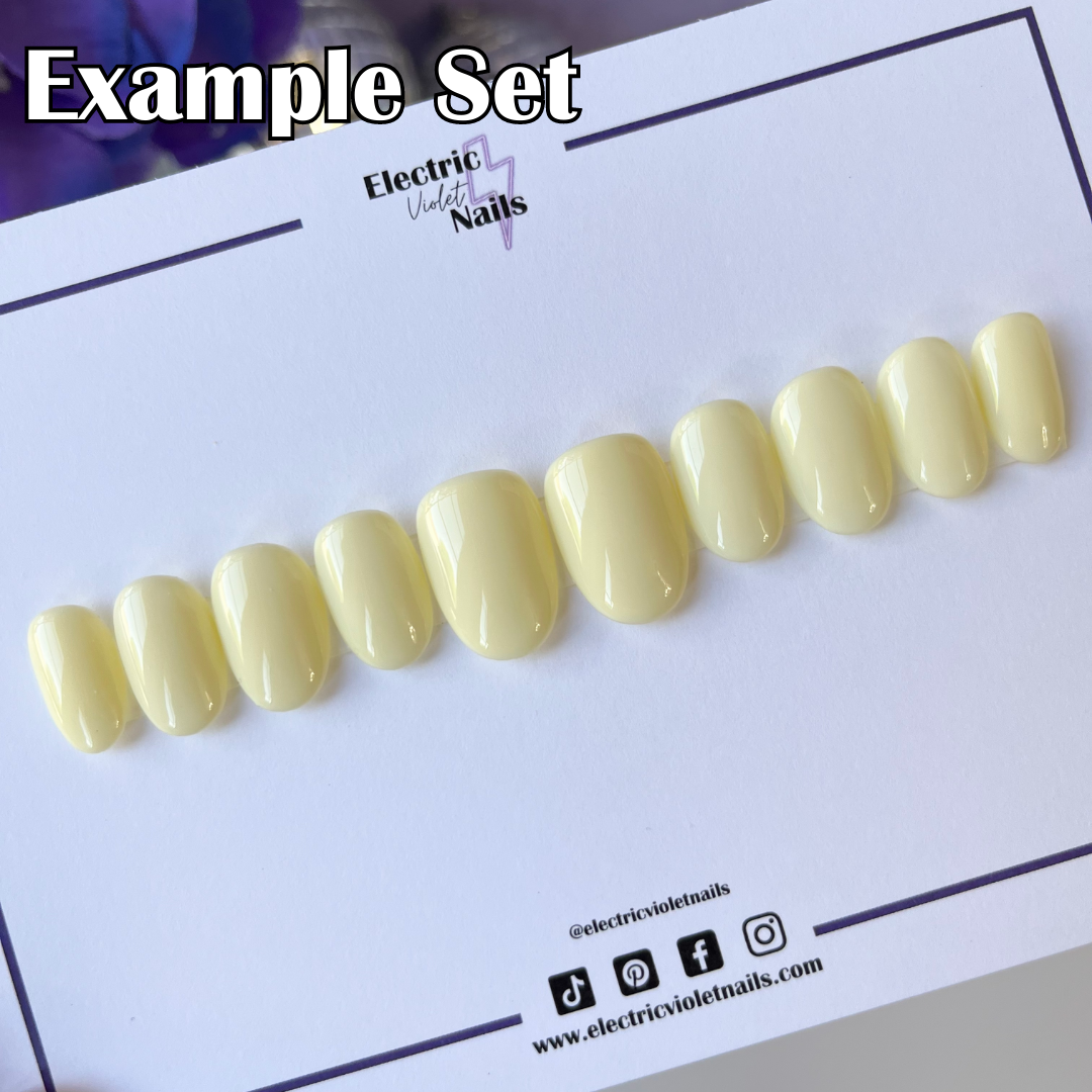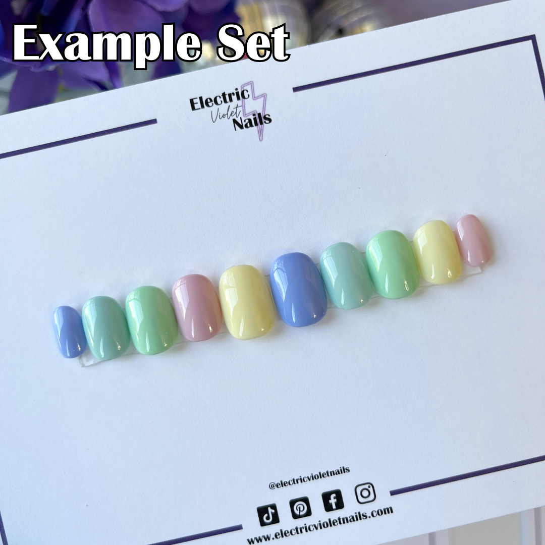 Please enter your sizes into your order notes. If you have questions about sizing, please reach out to me at info@electricvioletnails.com